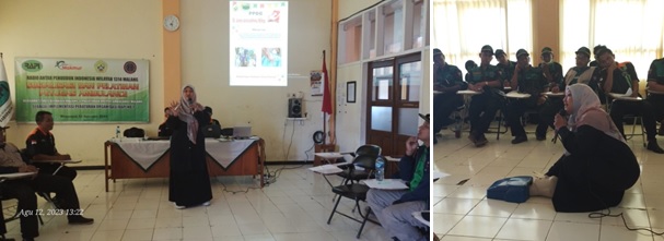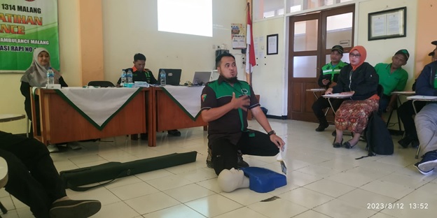 Dalam kegiatan ini Ibu Dr. Janes Jainurakhma, M.Kep. dan Bapak Zulfikar Muhammad, S.Kep., Ns., M.Kep. selaku narasumber dari LPI-STIKes Kepanjen, banyak memberikan pengenalan dan pelatihan terkait Pertolongan Pertama Gawat Darurat (PPGD) Awam. Materi yang diberikan siang hari tersebut terkait dengan ppenatalaksanaan perdarahan pada korban kecelakaan lalu lintas (LAKA), penatalaksanaan henti jantung pada masyarakat awam serta penanganan korban trauma kepala yang sering kali terjadi pada LAKA di wilayah kabupaten Malang.